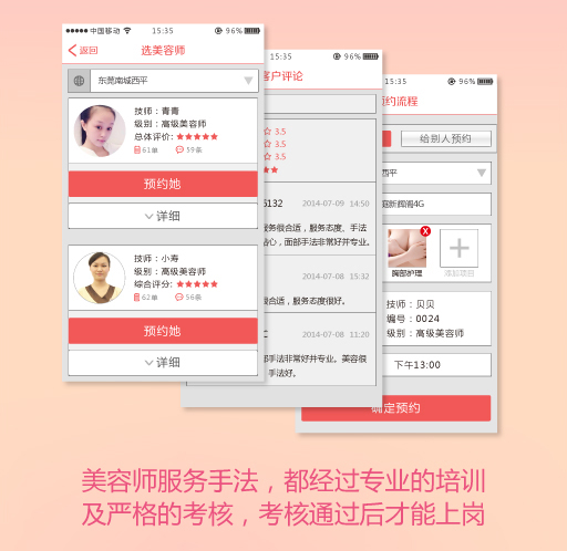 2、為了保障您的合法權(quán)益,本網(wǎng)站將不定期對美容師資質(zhì)及提供的美容服務進行考核,但您理解考核不可能每時每刻都在進行。所以,在確定預約前,請務必仔細閱讀美容師與服務項目的宣傳資料,并對其做出準確判斷。本平臺對美容師個人提供的宣傳和承諾并不承擔法律上的責任。